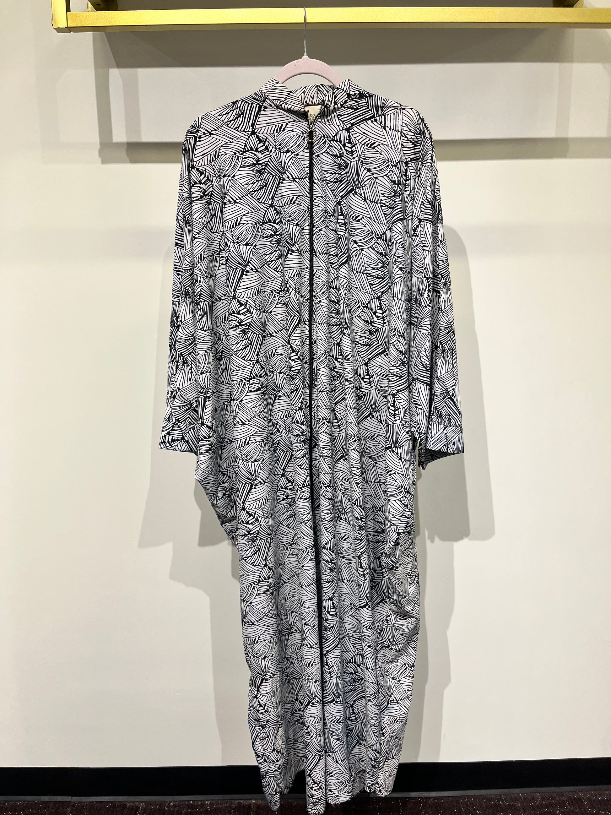 This elegant black and white abstract print abaya is designed for women who love bold yet modest fashion. Crafted from lightweight breathable crepe fabric, it offers a smooth, flowy drape with a comfortable relaxed fit. The front zipper closure adds modern functionality while the structured collar neckline enhances its refined look. Perfect for everyday wear, office styling, travel, and casual gatherings, this statement abaya blends comfort with contemporary sophistication.