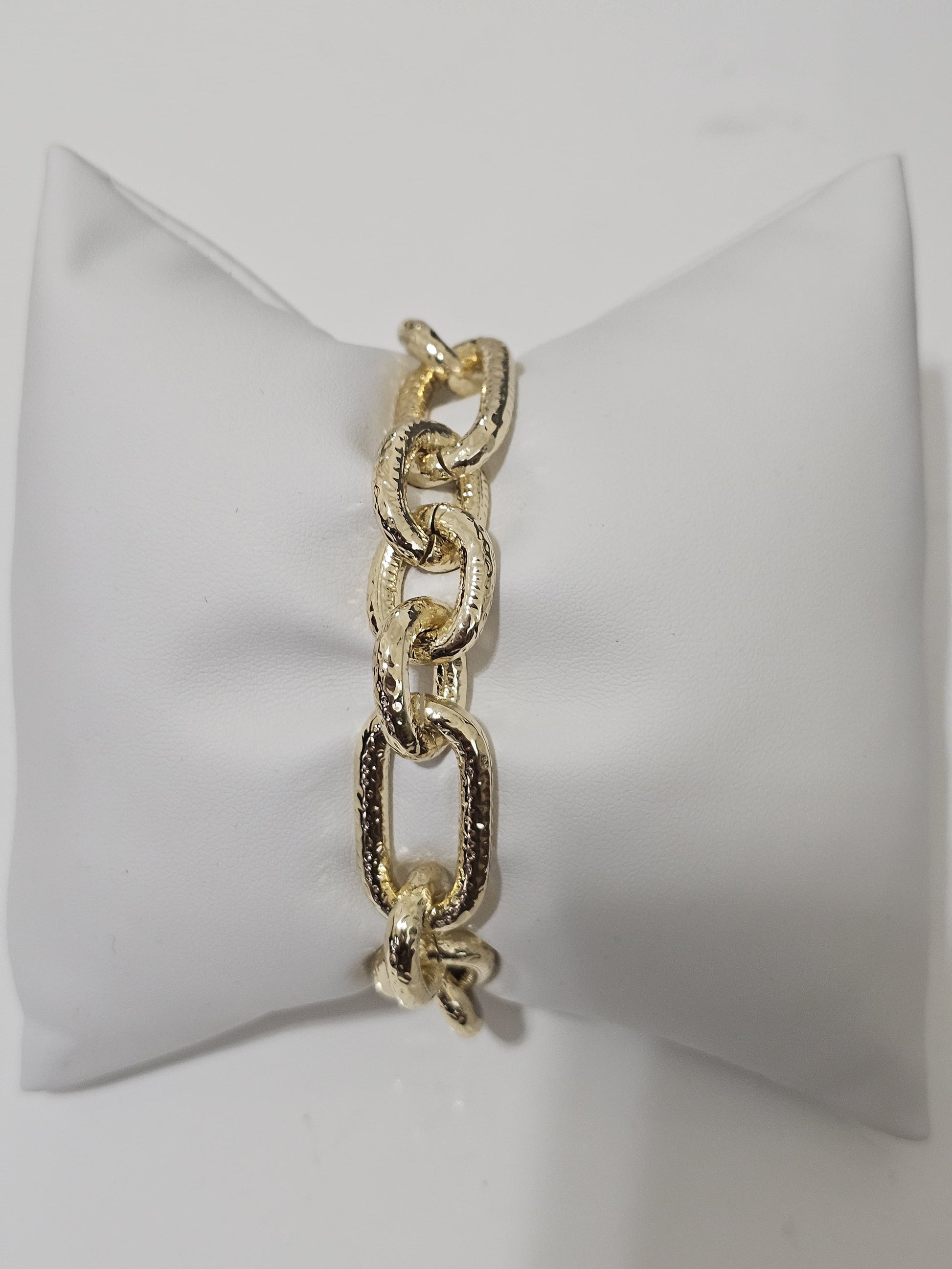 Elevate your wrist with this striking chunky gold bracelet, designed for those who appreciate bold, timeless elegance. The substantial links create a commanding presence while maintaining refined sophistication. Secured by a reliable magnetic lock mechanism, it offers both security and effortless convenience—simply snap it closed for a seamless fit. Perfect for layering or wearing solo, this statement piece transitions beautifully from day to evening, adding an air of understated luxury to any ensemble.