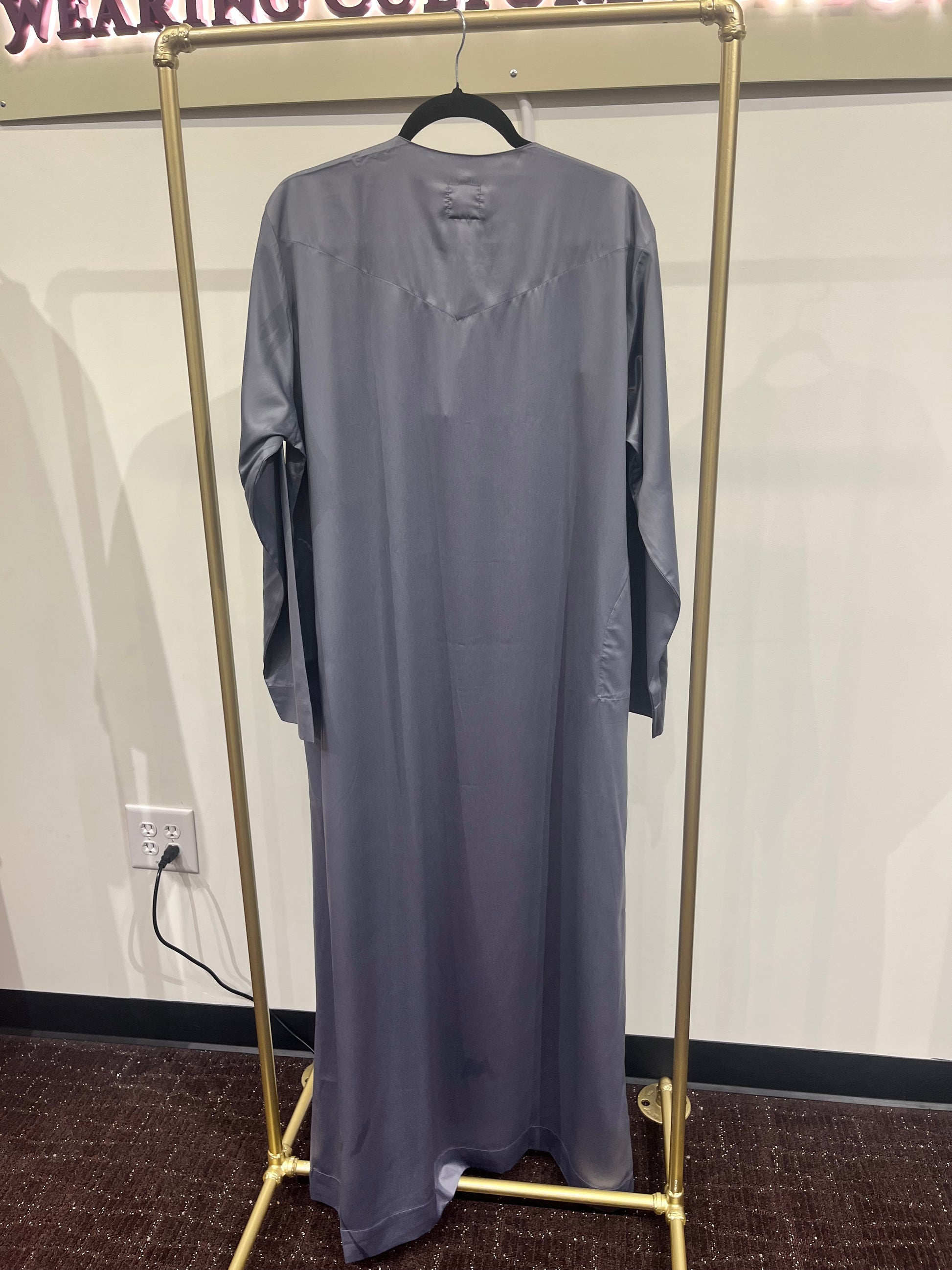 Refined, modern, and effortlessly elegant — our Ash Grey Signature Tassel Thobe is designed for the sophisticated gentleman. Featuring subtle V-shaped embroidery across the chest and a statement tassel neckline, this thobe blends tradition with contemporary style. Crafted in a smooth, flowing fabric with a clean silhouette, it’s perfect for Jummah, Eid, Nikah ceremonies, and formal gatherings.