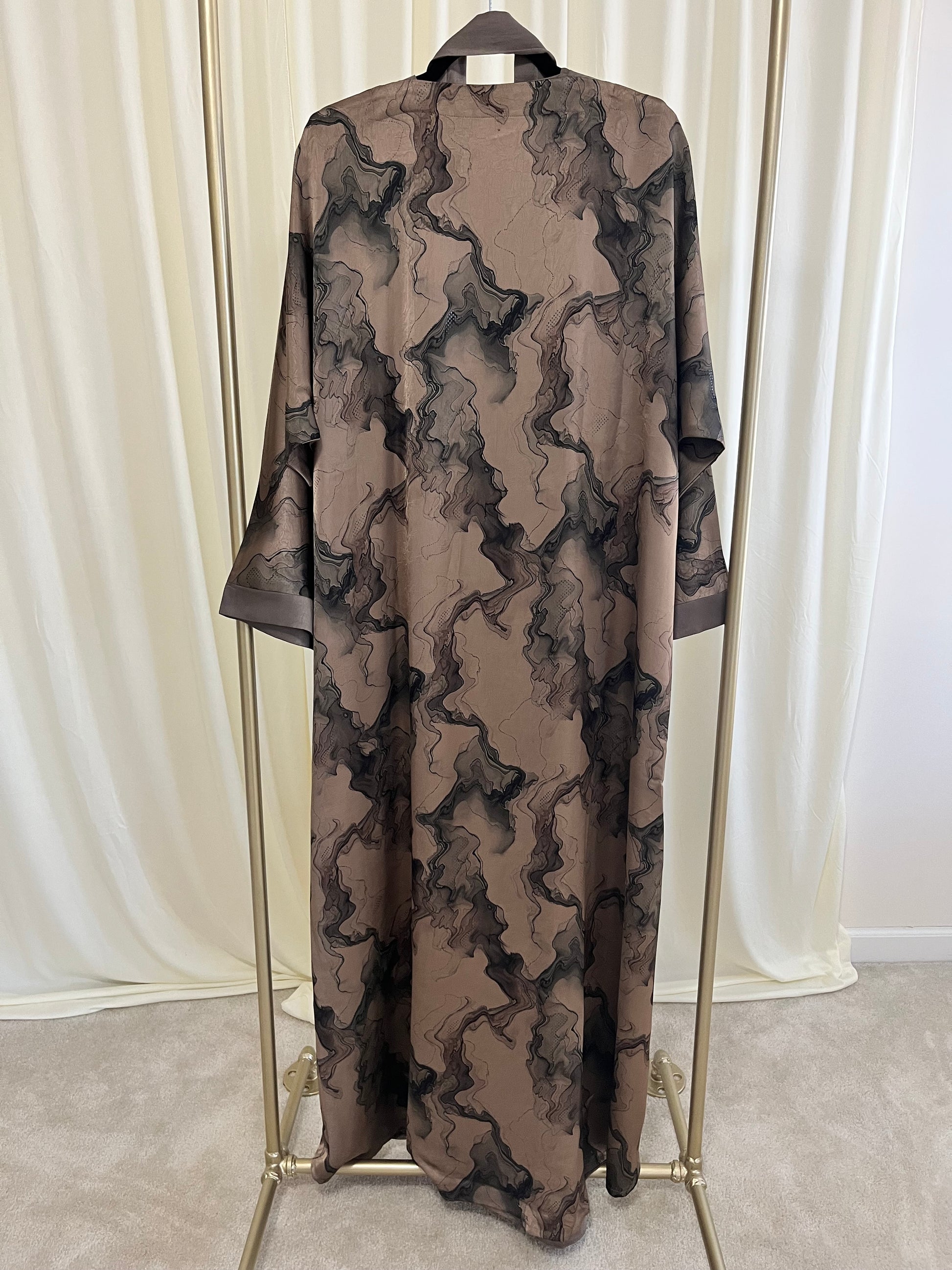 Smoke & Silver Liquid Marble & Mocha Luxe 2-Piece Tie dye Abaya Set